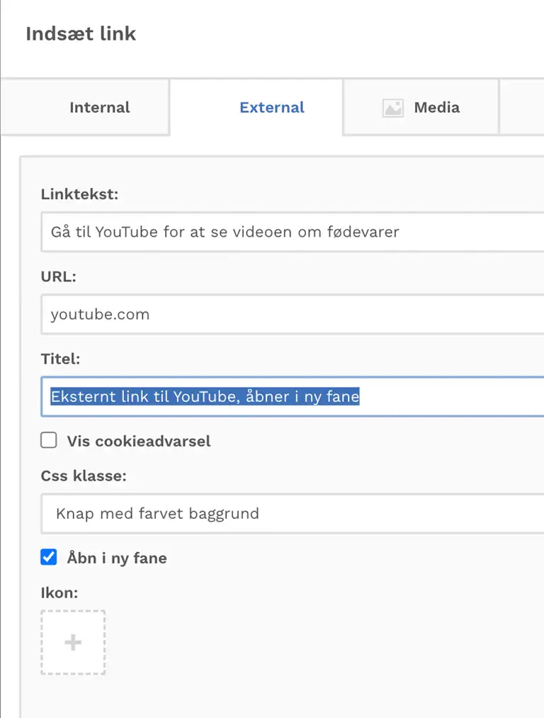 - Hvis I har mange, relaterede links, anbefaler vi at lave en link liste (læs mere om dette nederst i dette afsnit)