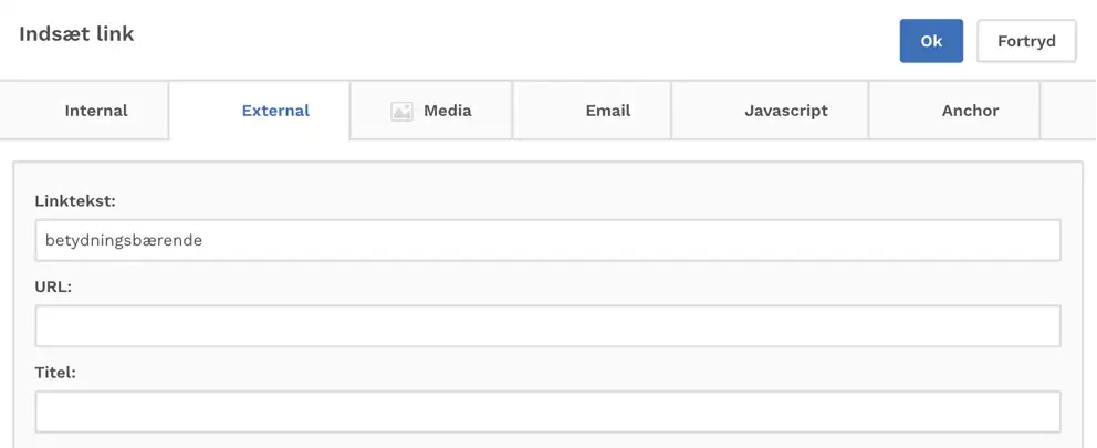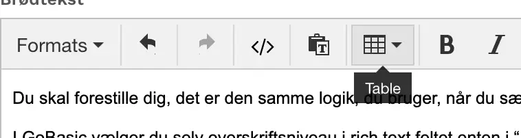 Niveau 1 (h1) er allerede sat sidens titelfelt. Så som redaktører skal du starte med en h2 i brødteksten (og derunder h3, h4 osv.). Det vil sige, at du som udgangspunkt kommer til at bruge h2 og derefter evt. h3.