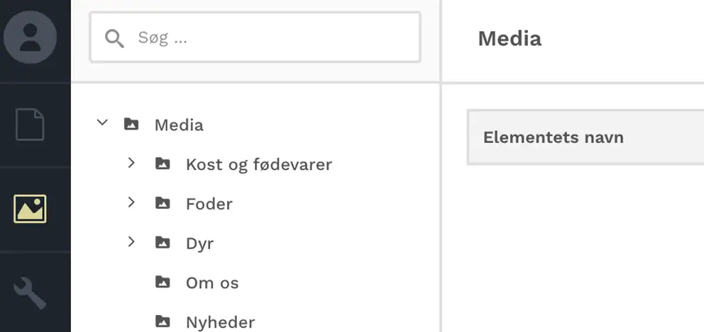 Mappestrukturen i jeres mediearkiv er oprettet, så den afspejler jeres sidestruktur på de øverste niveauer. Placer filerne i den relevante mappe.